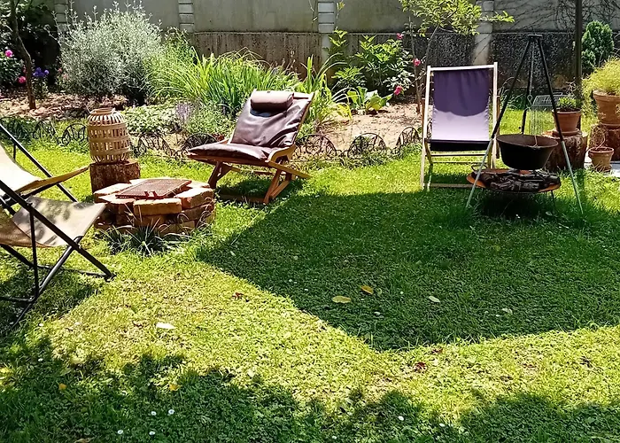 Utsikten över trädgården och omgivningen gör din vistelse komplett. Boendet erbjuder en separat toalett och ett badkar samt bekvämligheter som badrockar och tofflor.